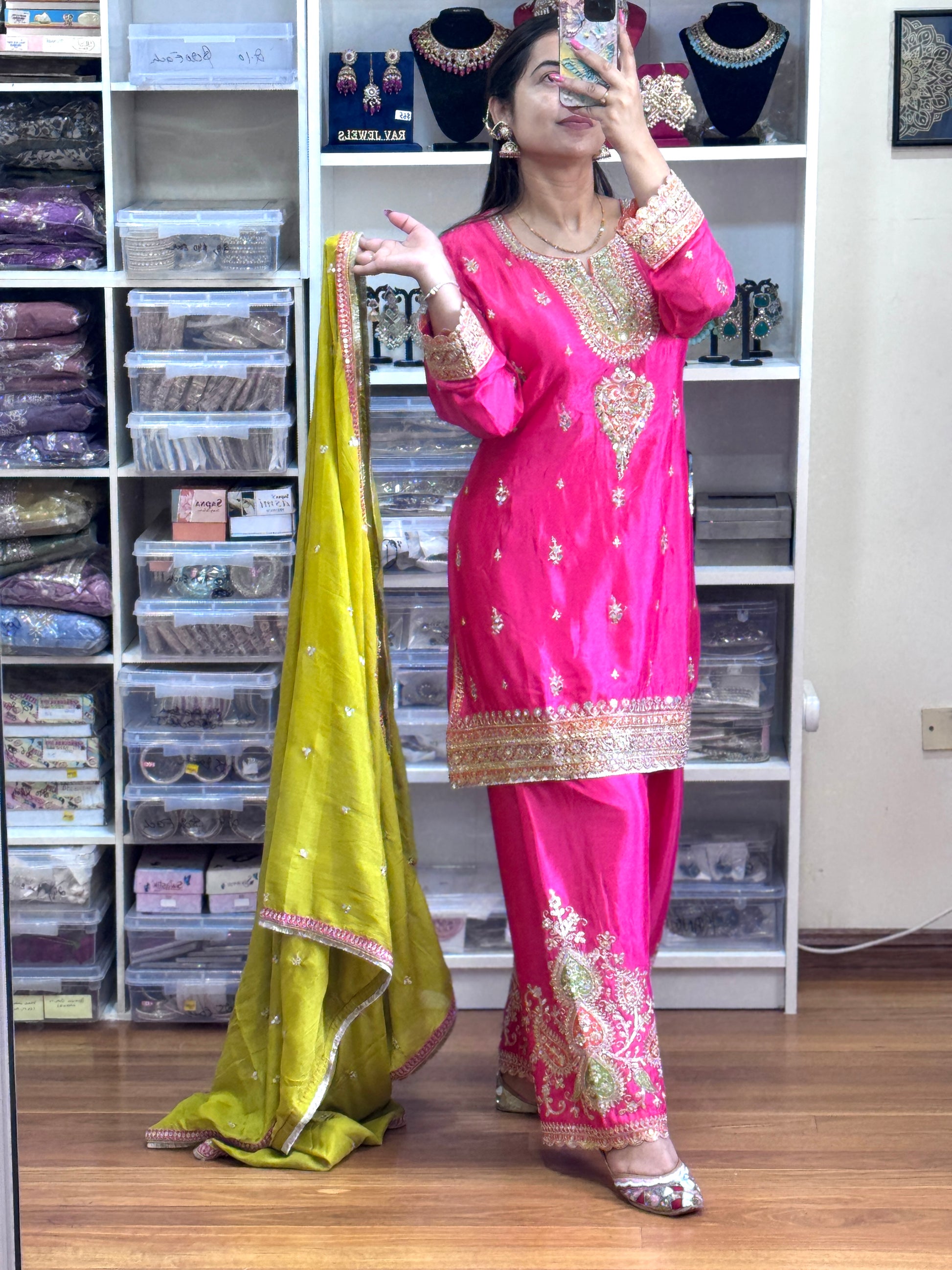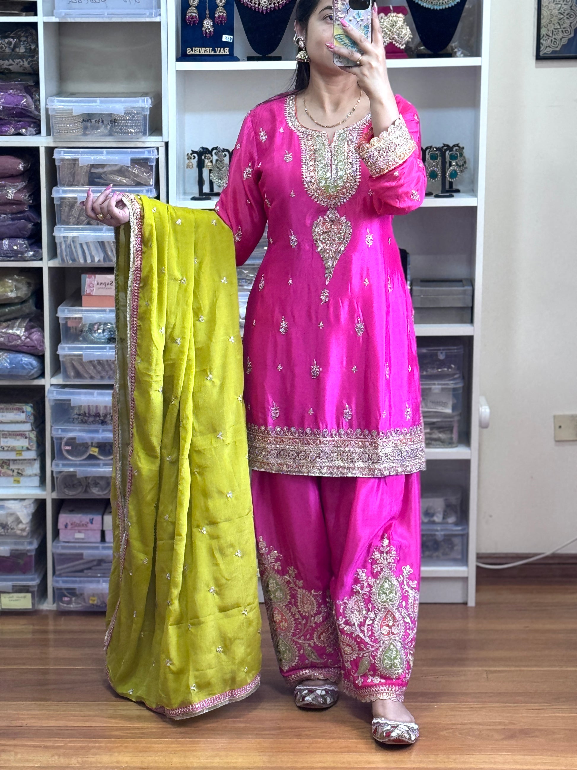 PREMIUM CHINON FARSHI SALWAR SUIT(Ready size 42 with margin upto 46)