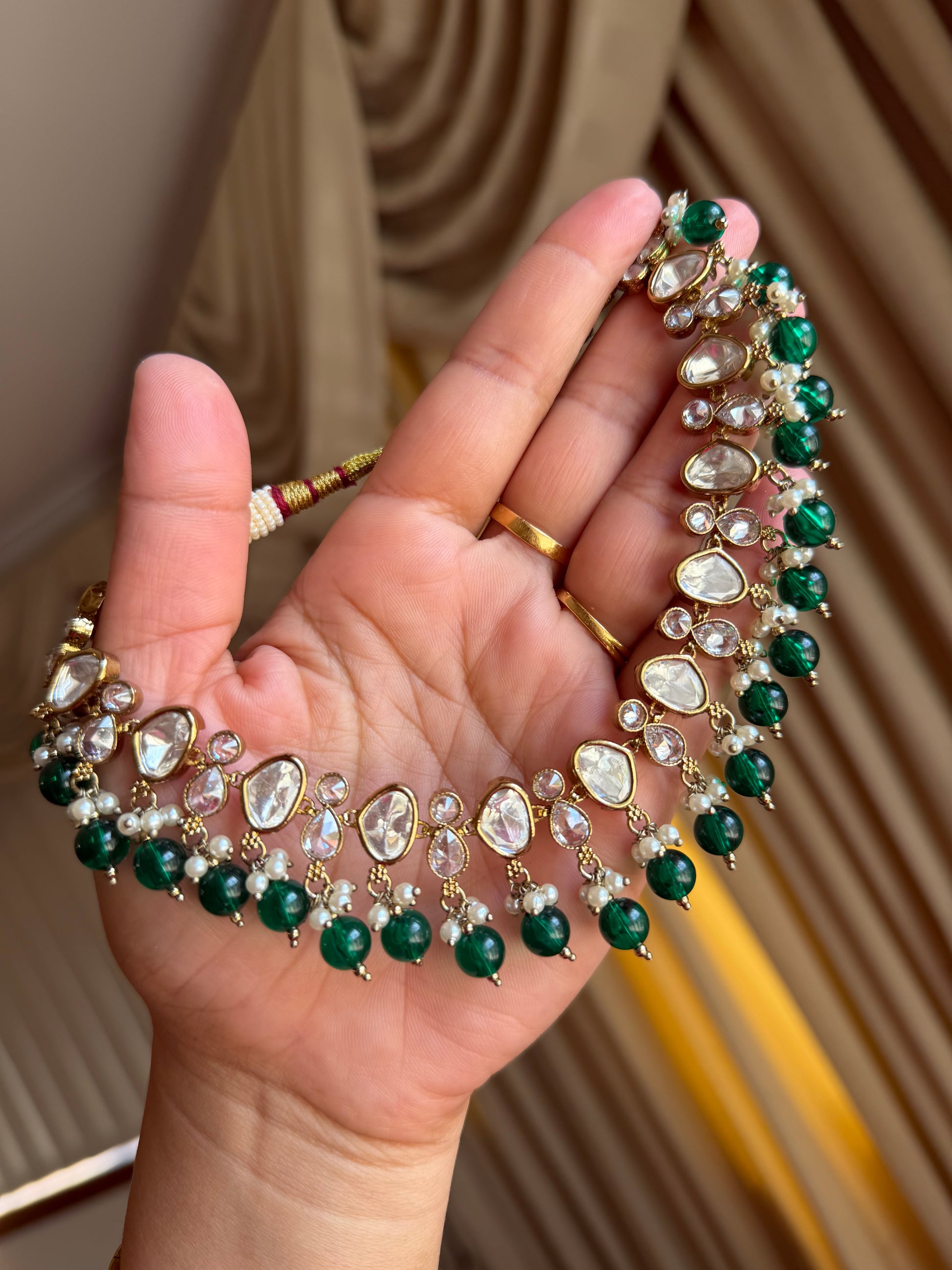 Premium tyani with polki necklace set( Green)